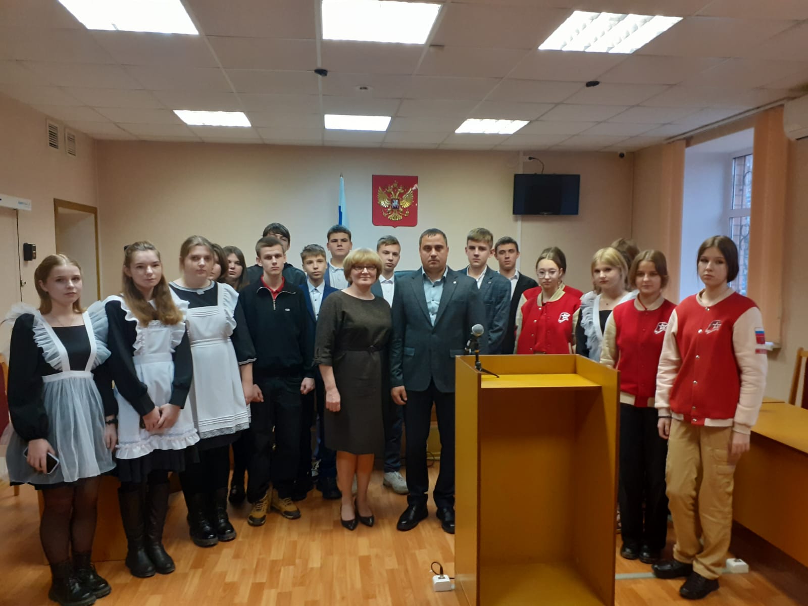 Судьями Аладышевым Д.В. и Князевой О.Ю. с учащимися проведена экскурсия по зданию суда, которая началась с холла здания суда, где судебные приставы по обеспечению установленного порядка деятельности судов познакомили ребят с постом охраны суда, который оборудован высококлассной техникой и работает в соответствии с правилами пропускного режима. Учащиеся побывали в зале судебного заседания, который оборудован для рассмотрения уголовных дел с участием присяжных заседателей. Они ознакомились с организацией приема граждан, работой информационного киоска, посетили кабинеты судей и работников аппарата суда. В ходе встречи судьи ответили на вопросы учащихся, рассказали им о работе судов, а также рассказали об интересных моментах из своей судебной практики. Судьей Князевой О.Ю. детям была прочитана лекция, в которой были освещены вопросы материальной ответственности несовершеннолетних, в возрасте от 14-ти до 18-ти лет, ответственности несовершеннолетних при управлении транспортным средством при отсутствии прав на это управление, а также об ответственности граждан в связи со съемкой видео в общественных местах. Данная встреча проводилась в целях повышения правовой культуры и правового просвещения детей, а также формирования у учащихся правосознания и позитивного отношения к Российской судебной системе, уважительного отношения к закону.