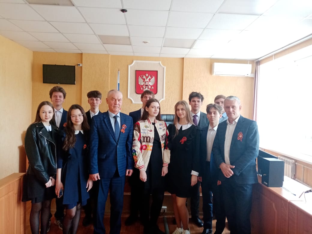 В преддверии 80-й годовщины Победы в Великой Отечественной войне, а также в рамках реализации проекта «Территория права» учащиеся 11 класса МБОУ «Темниковская школа №1» с учителем истории и обществознания Половинкиным Николаем Федоровичем посетили Темниковский районный суд. Также Иван Александрович рассказал о ключевых моментах Великой Отечественной войны, подвигах советского народа и важности сохранения исторической памяти. «Помнить о Великой Победе – это не только знать даты и факты, но и понимать какой ценой она была достигнута. Мы должны быть достойны подвига наших предков!» - подчеркнул Сюлин И.А. Встреча прошла в формате живого диалога и стала важной возможностью для школьников ближе познакомиться с историей и значением судебной власти в судьбе страны. Такие встречи помогают сохранить память о героическом прошлом и формируют у молодёжи уважение к праву, справедливости и профессии судьи.